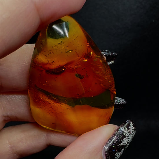 Amber is the fossilized resinous tree sap from conifer trees, which over the course of millions of years becomes solid while retaining the semitransparent yellowish hue of tree sap. While in its sticky gel state, it is not uncommon for insects and other small animals to become trapped within tree sap, and under optimal conditions these insects will be clearly visible within the fossilized amber pieces. These high quality and exceptional color Chiapan Amber originated in Mexico during the Oligocene, roughly 20 million years ago. Each contains at least one (most several) clearly visible insect.