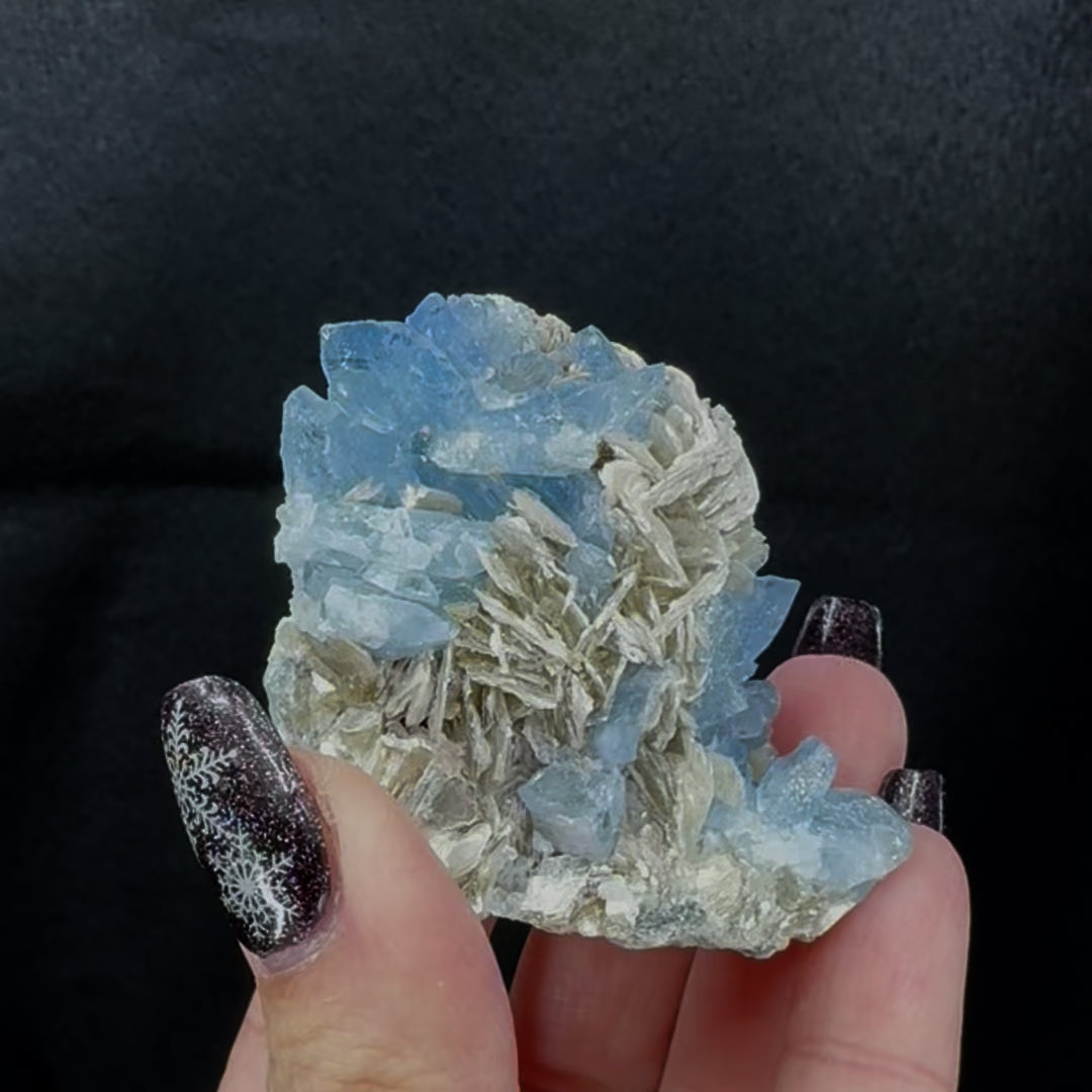 Aquamarine is a form of Beryl crystal long sought after as a gem and precious stone due to its beautiful blue-green hue and clarity. It is found in many sites across the world, typically associated with granitic pegmatites, and is one of the more common gems although pieces of exceptional hue and clarity are considered fairly rare and can be extremely valuable. Aquamarine has a hexagonal crystal structure and is highly prismatic.