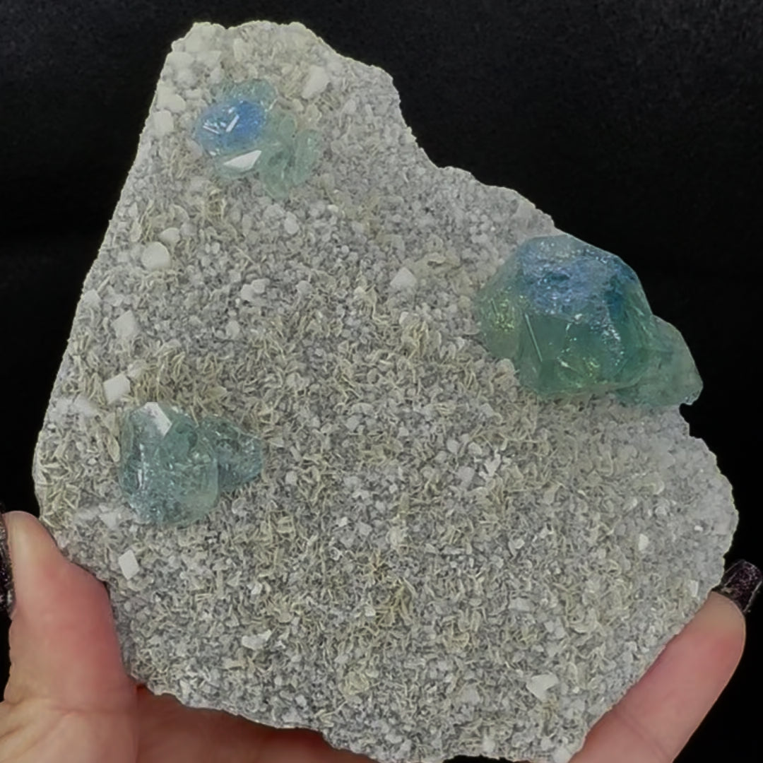 Aquamarine is a form of Beryl crystal long sought after as a gem and precious stone due to its beautiful blue-green hue and clarity. It is found in many sites across the world, typically associated with granitic pegmatites, and is one of the more common gems although pieces of exceptional hue and clarity are considered fairly rare and can be extremely valuable. Aquamarine has a hexagonal crystal structure and is highly prismatic.