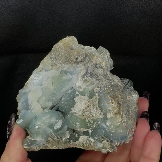 Aquamarine is a form of Beryl crystal long sought after as a gem and precious stone due to its beautiful blue-green hue and clarity. It is found in many sites across the world, typically associated with granitic pegmatites, and is one of the more common gems although pieces of exceptional hue and clarity are considered fairly rare and can be extremely valuable. Aquamarine has a hexagonal crystal structure and is highly prismatic.