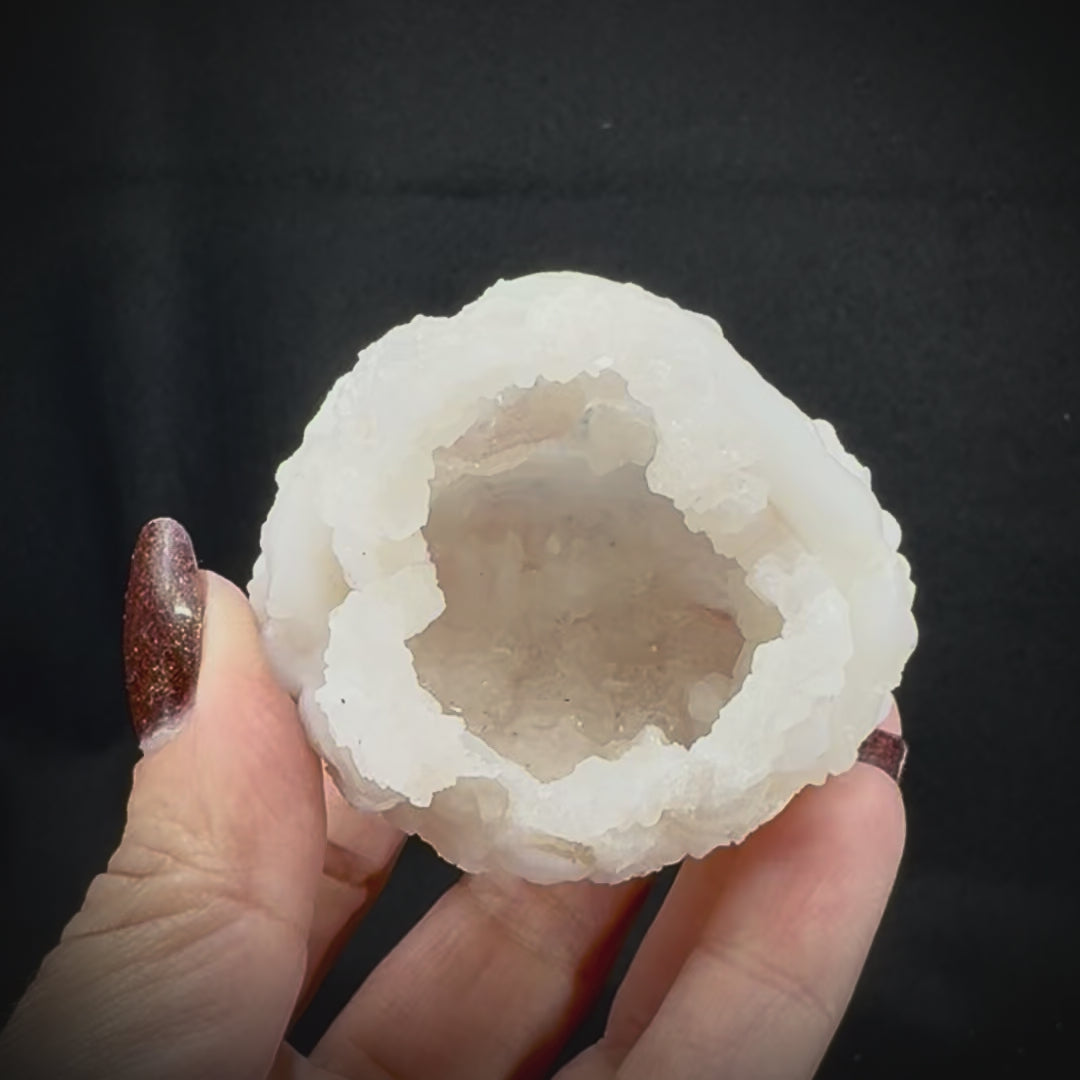 A silicone-based mineral closely related to quartz and agate, Chalcedony has a unique crystalline structure that gives it an enormously variable appearance. This mineral forms in a similar fashion to agates and geodes but due to heat and pressure at the time of formation results in a distinct look and almost silky texture. Chalcedony can be found in a range of colors but most often occurs in semitransparent or white. It has a long archaeological record of human use as a cutting or carving tool, dating back as far as 32,000 BC. Chalcedony has a number of forms that are also considered gems of their own, such as agates, carnelian, and onyx. These unique, highly variable Chalcedony spheres or roses are almost geode-like in appearance and one can clearly see the process of geode or agate formation in progress in each specimen.