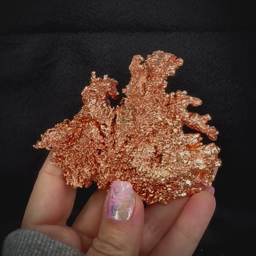 A widespread and industrially important mineral, copper has been used by humans as ornamentation, tools, and as a precious metal for thousands of years. The word copper originates from the latin for the island of Cyprus, where early very productive copper mines supplied much of the ancient world with the material. Copper is a so-called native metal, which means it naturally occurs in its metallic form. Natural copper is relatively soft and often found in intricate and unique structures, with nodules and delicate filigree-like branches.
