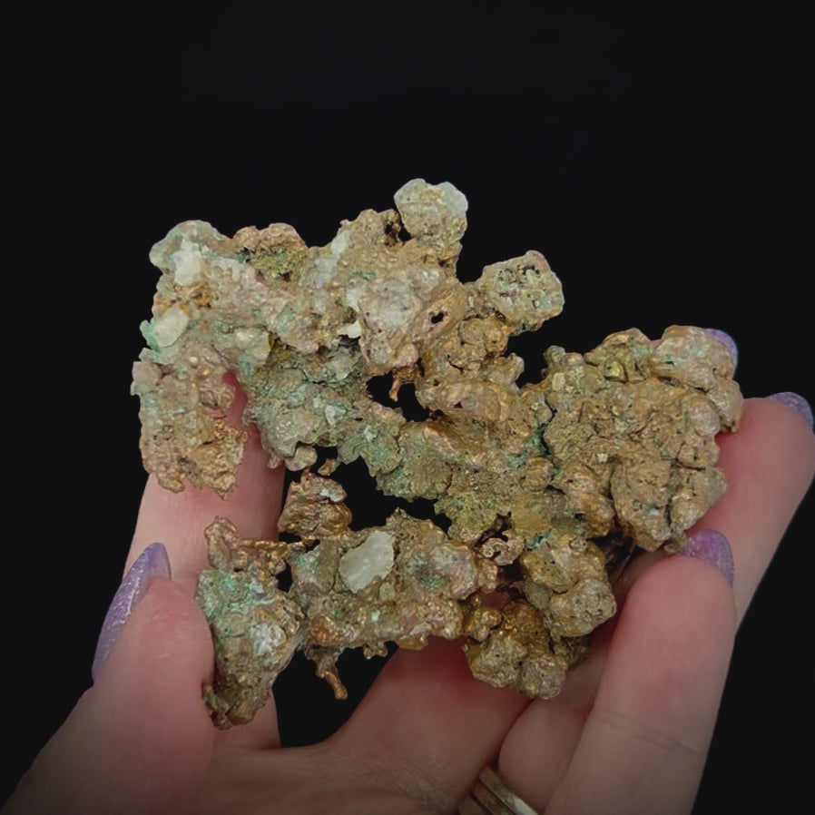A widespread and industrially important mineral, copper has been used by humans as ornamentation, tools, and as a precious metal for thousands of years. The word copper originates from the latin for the island of Cyprus, where early very productive copper mines supplied much of the ancient world with the material. Copper is a so-called native metal, which means it naturally occurs in its metallic form. Natural copper is relatively soft and often found in intricate and unique structures, with nodules and delicate filigree-like branches.