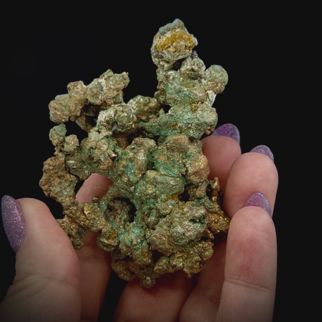 A widespread and industrially important mineral, copper has been used by humans as ornamentation, tools, and as a precious metal for thousands of years. The word copper originates from the latin for the island of Cyprus, where early very productive copper mines supplied much of the ancient world with the material. Copper is a so-called native metal, which means it naturally occurs in its metallic form. Natural copper is relatively soft and often found in intricate and unique structures, with nodules and delicate filigree-like branches.