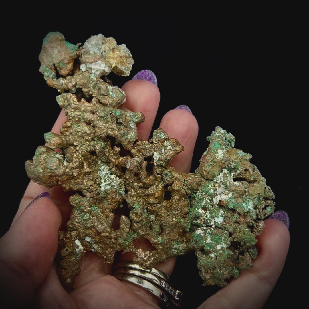 A widespread and industrially important mineral, copper has been used by humans as ornamentation, tools, and as a precious metal for thousands of years. The word copper originates from the latin for the island of Cyprus, where early very productive copper mines supplied much of the ancient world with the material. Copper is a so-called native metal, which means it naturally occurs in its metallic form. Natural copper is relatively soft and often found in intricate and unique structures, with nodules and delicate filigree-like branches.