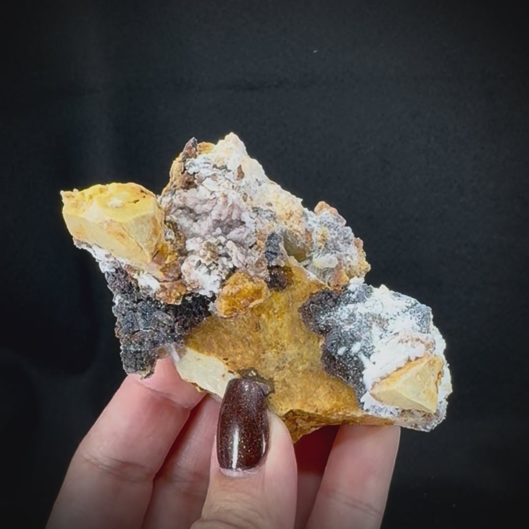 Known for its beautiful prismatic crystals, often radiating outward from a central axis, Creedite is named for the place of its initial discovery, the Creede Quadrangle in Colorado. Creedite is a rare mineral in the hydoxylhalide group and is often formed from the intense oxidation of fluorite formations. Only known from a relatively small number of formations worldwide, Creedite is sought after for its unique fine crystalline structure.