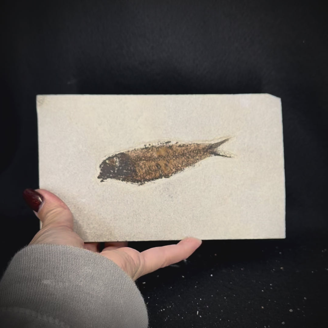 During the Eocene, 40-50 million years ago, vast shoals of freshwater fish inhabited a large shallow inland sea across the American West. The herring-like fish of the genus Knightia were far and away the most abundant freshwater fish during this era, and because of this they are one of the most frequently found vertebrate fossils on earth. Originating from the famed Green River Formation in Wyoming, fossils of Knightia eocaena and their close relatives are popular among both amateur and seasoned collectors due to their delicate preservation of detail, often including scale and other soft tissue traces against a high contrast laminated limestone slab. Each of our fish fossil specimens has been expertly prepared and is 100% authentic and unrestored or repaired.