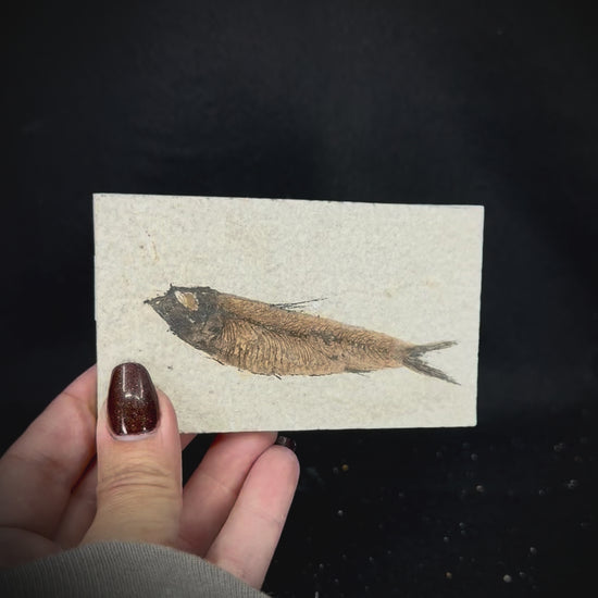 During the Eocene, 40-50 million years ago, vast shoals of freshwater fish inhabited a large shallow inland sea across the American West. The herring-like fish of the genus Knightia were far and away the most abundant freshwater fish during this era, and because of this they are one of the most frequently found vertebrate fossils on earth. Originating from the famed Green River Formation in Wyoming, fossils of Knightia eocaena and their close relatives are popular among both amateur and seasoned collectors due to their delicate preservation of detail, often including scale and other soft tissue traces against a high contrast laminated limestone slab. Each of our fish fossil specimens has been expertly prepared and is 100% authentic and unrestored or repaired.