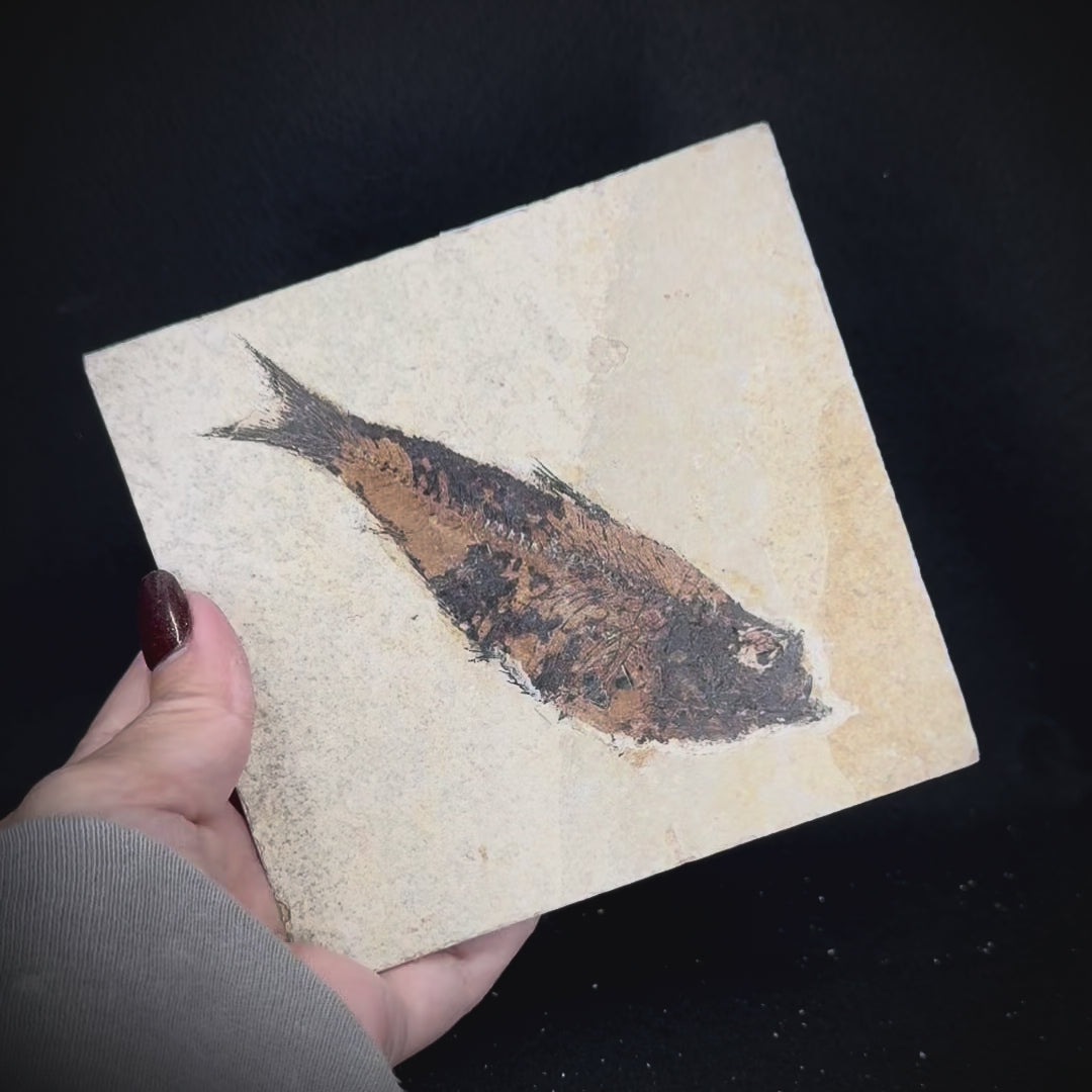 During the Eocene, 40-50 million years ago, vast shoals of freshwater fish inhabited a large shallow inland sea across the American West. The herring-like fish of the genus Knightia were far and away the most abundant freshwater fish during this era, and because of this they are one of the most frequently found vertebrate fossils on earth. Originating from the famed Green River Formation in Wyoming, fossils of Knightia eocaena and their close relatives are popular among both amateur and seasoned collectors due to their delicate preservation of detail, often including scale and other soft tissue traces against a high contrast laminated limestone slab. Each of our fish fossil specimens has been expertly prepared and is 100% authentic and unrestored or repaired.