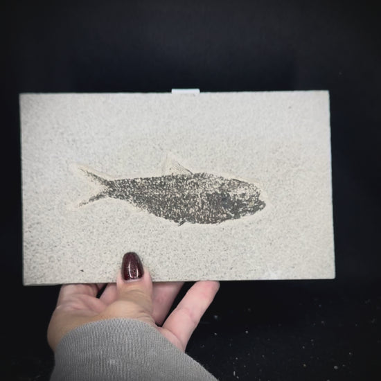 During the Eocene, 40-50 million years ago, vast shoals of freshwater fish inhabited a large shallow inland sea across the American West. The herring-like fish of the genus Knightia were far and away the most abundant freshwater fish during this era, and because of this they are one of the most frequently found vertebrate fossils on earth. Originating from the famed Green River Formation in Wyoming, fossils of Knightia eocaena and their close relatives are popular among both amateur and seasoned collectors due to their delicate preservation of detail, often including scale and other soft tissue traces against a high contrast laminated limestone slab. Each of our fish fossil specimens has been expertly prepared and is 100% authentic and unrestored or repaired.