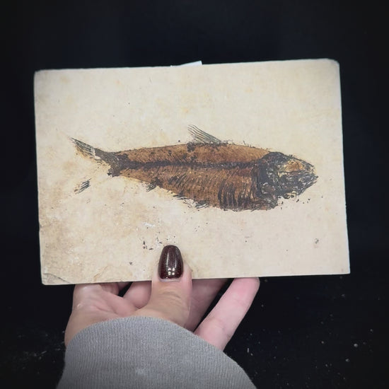 During the Eocene, 40-50 million years ago, vast shoals of freshwater fish inhabited a large shallow inland sea across the American West. The herring-like fish of the genus Knightia were far and away the most abundant freshwater fish during this era, and because of this they are one of the most frequently found vertebrate fossils on earth. Originating from the famed Green River Formation in Wyoming, fossils of Knightia eocaena and their close relatives are popular among both amateur and seasoned collectors due to their delicate preservation of detail, often including scale and other soft tissue traces against a high contrast laminated limestone slab. Each of our fish fossil specimens has been expertly prepared and is 100% authentic and unrestored or repaired.