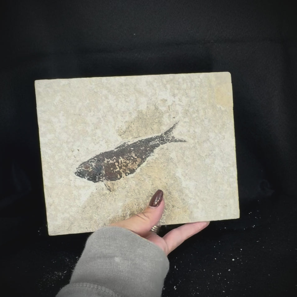 During the Eocene, 40-50 million years ago, vast shoals of freshwater fish inhabited a large shallow inland sea across the American West. The herring-like fish of the genus Knightia were far and away the most abundant freshwater fish during this era, and because of this they are one of the most frequently found vertebrate fossils on earth. Originating from the famed Green River Formation in Wyoming, fossils of Knightia eocaena and their close relatives are popular among both amateur and seasoned collectors due to their delicate preservation of detail, often including scale and other soft tissue traces against a high contrast laminated limestone slab. Each of our fish fossil specimens has been expertly prepared and is 100% authentic and unrestored or repaired.