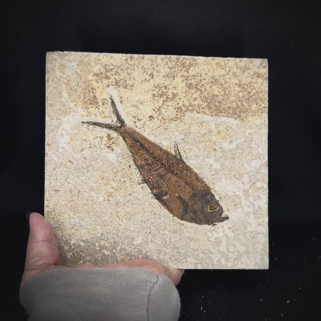 During the Eocene, 40-50 million years ago, vast shoals of freshwater fish inhabited a large shallow inland sea across the American West. The herring-like fish of the genus Knightia were far and away the most abundant freshwater fish during this era, and because of this they are one of the most frequently found vertebrate fossils on earth. Originating from the famed Green River Formation in Wyoming, fossils of Knightia eocaena and their close relatives are popular among both amateur and seasoned collectors due to their delicate preservation of detail, often including scale and other soft tissue traces against a high contrast laminated limestone slab. Each of our fish fossil specimens has been expertly prepared and is 100% authentic and unrestored or repaired.