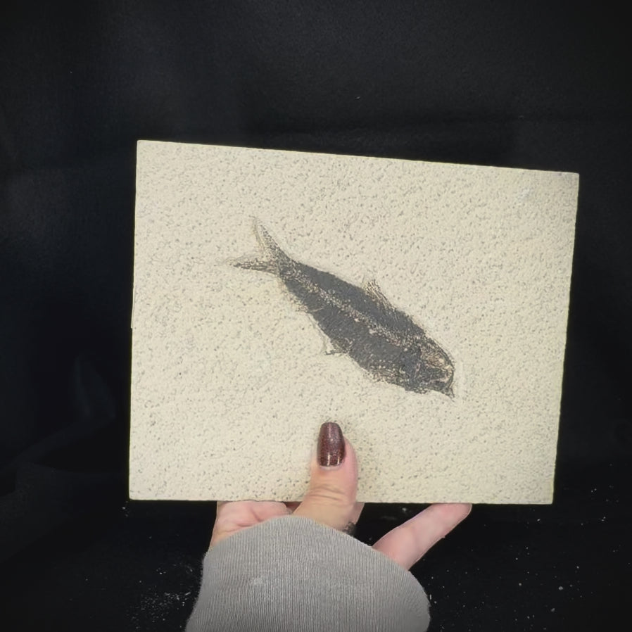 During the Eocene, 40-50 million years ago, vast shoals of freshwater fish inhabited a large shallow inland sea across the American West. The herring-like fish of the genus Knightia were far and away the most abundant freshwater fish during this era, and because of this they are one of the most frequently found vertebrate fossils on earth. Originating from the famed Green River Formation in Wyoming, fossils of Knightia eocaena and their close relatives are popular among both amateur and seasoned collectors due to their delicate preservation of detail, often including scale and other soft tissue traces against a high contrast laminated limestone slab. Each of our fish fossil specimens has been expertly prepared and is 100% authentic and unrestored or repaired.