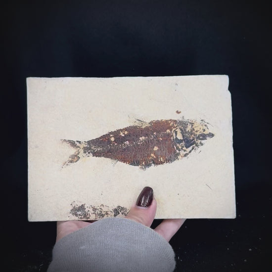 During the Eocene, 40-50 million years ago, vast shoals of freshwater fish inhabited a large shallow inland sea across the American West. The herring-like fish of the genus Knightia were far and away the most abundant freshwater fish during this era, and because of this they are one of the most frequently found vertebrate fossils on earth. Originating from the famed Green River Formation in Wyoming, fossils of Knightia eocaena and their close relatives are popular among both amateur and seasoned collectors due to their delicate preservation of detail, often including scale and other soft tissue traces against a high contrast laminated limestone slab. Each of our fish fossil specimens has been expertly prepared and is 100% authentic and unrestored or repaired.