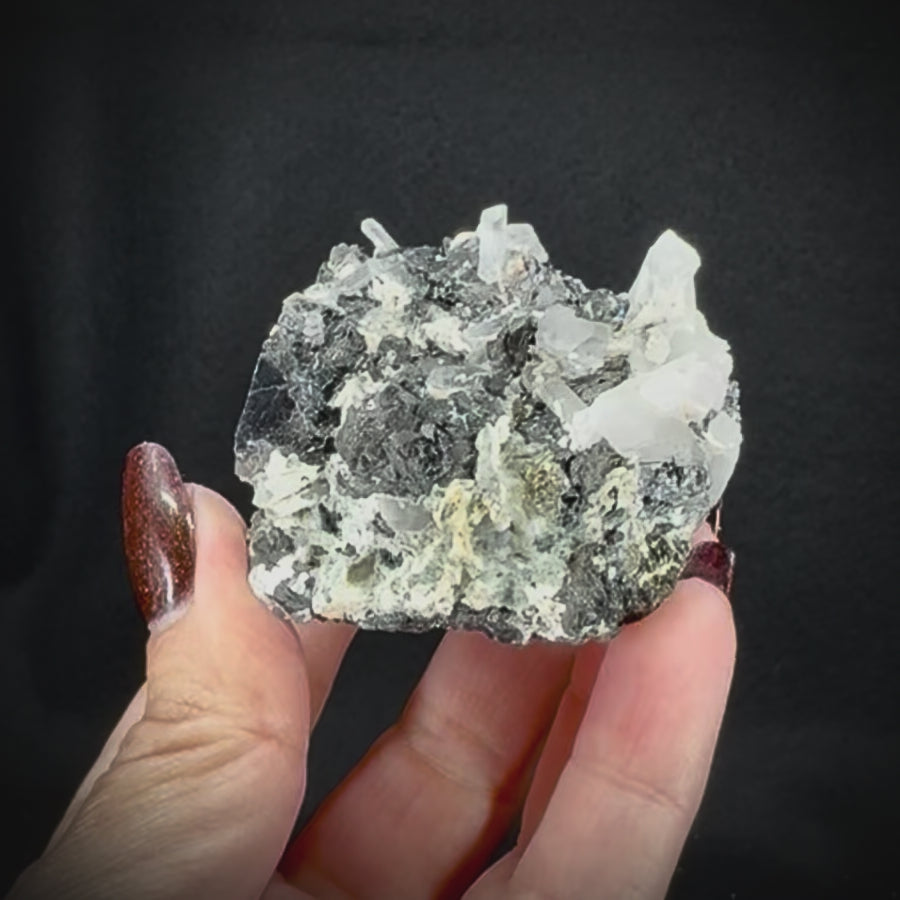 These highly variable pieces contain Fluorite crystal clusters within different matrixes, including feldspar, fine quartz crystals, botryoidal quartz, and other materials all originating from the Yindu Mine in Inner Mongolia, China. No two are alike, and each has its own unique distinct character.