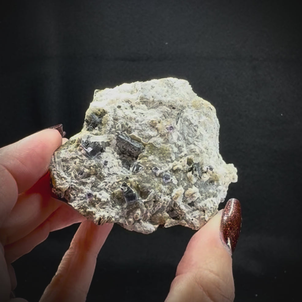 These highly variable pieces contain Fluorite crystal clusters within different matrixes, including feldspar, fine quartz crystals, botryoidal quartz, and other materials all originating from the Yindu Mine in Inner Mongolia, China. No two are alike, and each has its own unique distinct character.