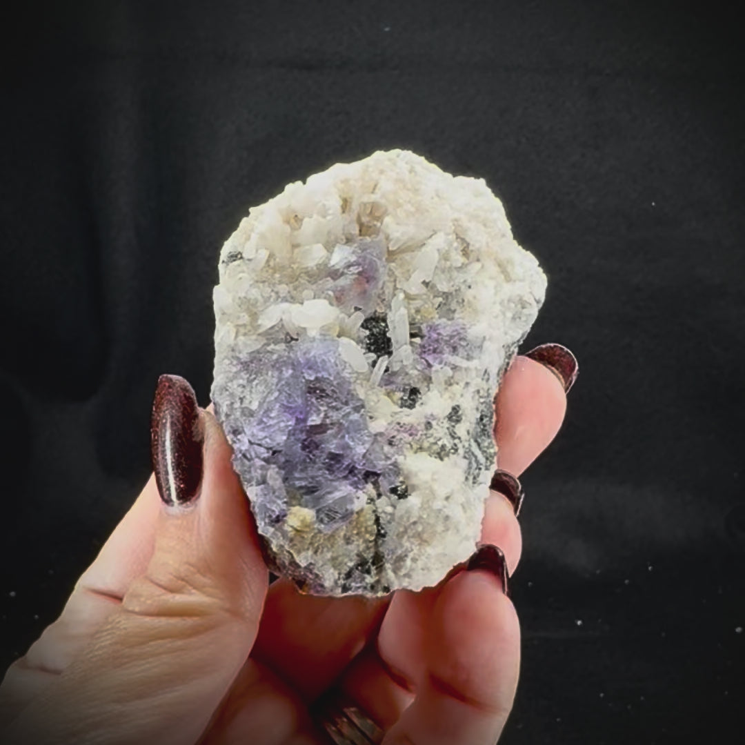 These highly variable pieces contain Fluorite crystal clusters within different matrixes, including feldspar, fine quartz crystals, botryoidal quartz, and other materials all originating from the Yindu Mine in Inner Mongolia, China. No two are alike, and each has its own unique distinct character.