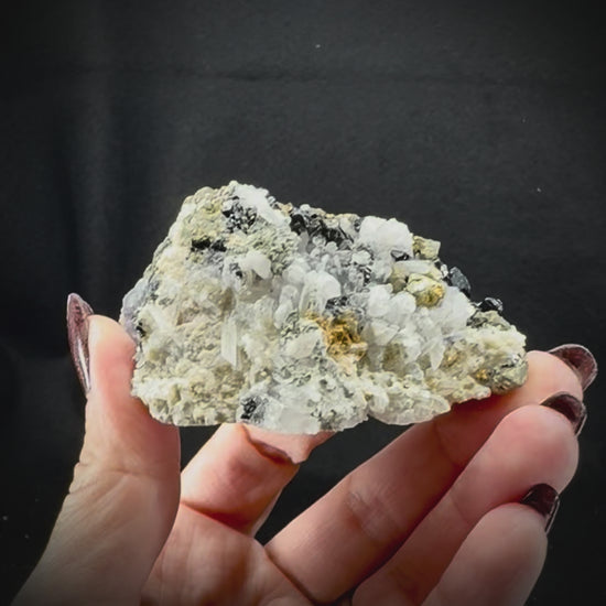 These highly variable pieces contain Fluorite crystal clusters within different matrixes, including feldspar, fine quartz crystals, botryoidal quartz, and other materials all originating from the Yindu Mine in Inner Mongolia, China. No two are alike, and each has its own unique distinct character.