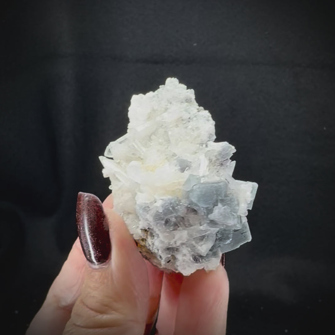 These highly variable pieces contain Fluorite crystal clusters within different matrixes, including feldspar, fine quartz crystals, botryoidal quartz, and other materials all originating from the Yindu Mine in Inner Mongolia, China. No two are alike, and each has its own unique distinct character.