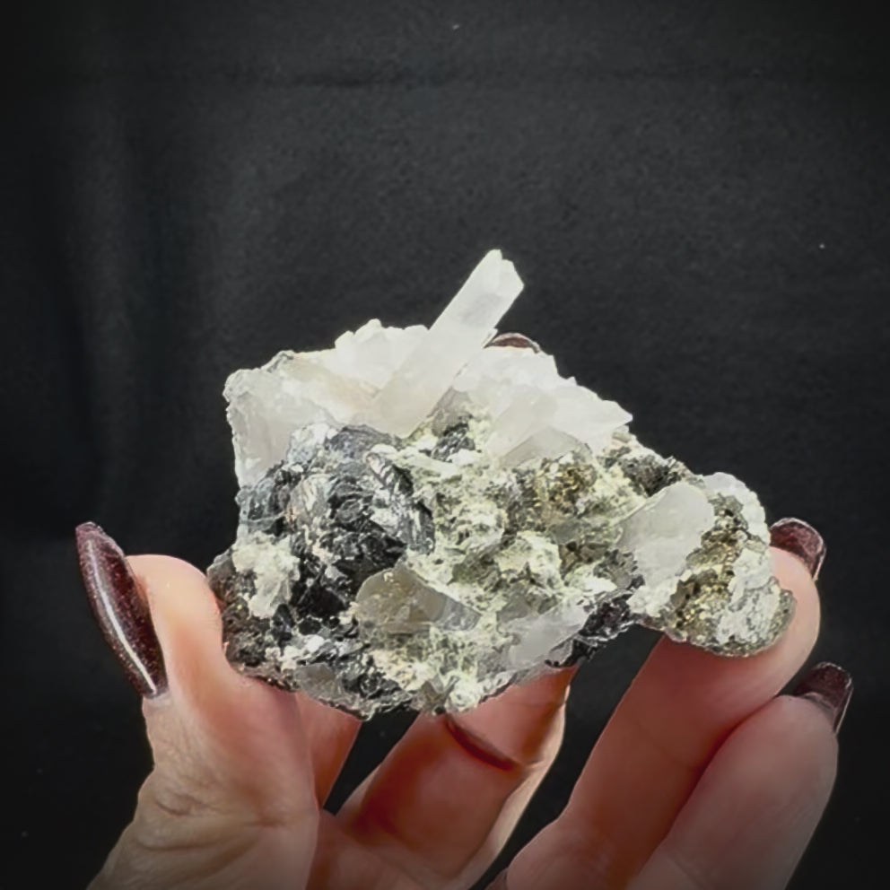 These highly variable pieces contain Fluorite crystal clusters within different matrixes, including feldspar, fine quartz crystals, botryoidal quartz, and other materials all originating from the Yindu Mine in Inner Mongolia, China. No two are alike, and each has its own unique distinct character.