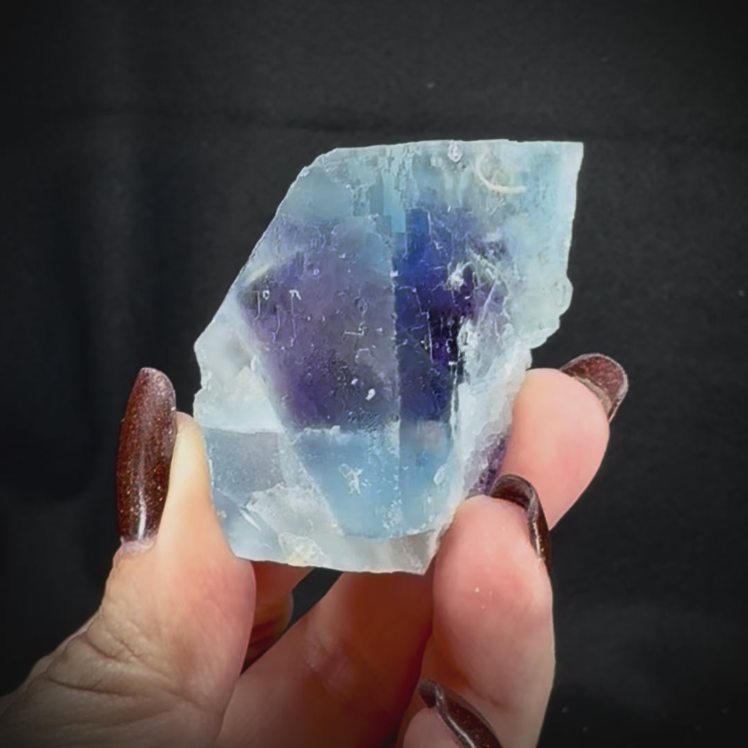 The name "Phantom" Fluorite is applied to Fluorite crystals with a visibly darker colored crystal core within, a ghost or phantom of the crystal during its formation still remaining in the interior. The darker color is caused by differing conditions and impurities during formation that changed over time leaving the area closer to the crystal's surface lighter or more transparent.
