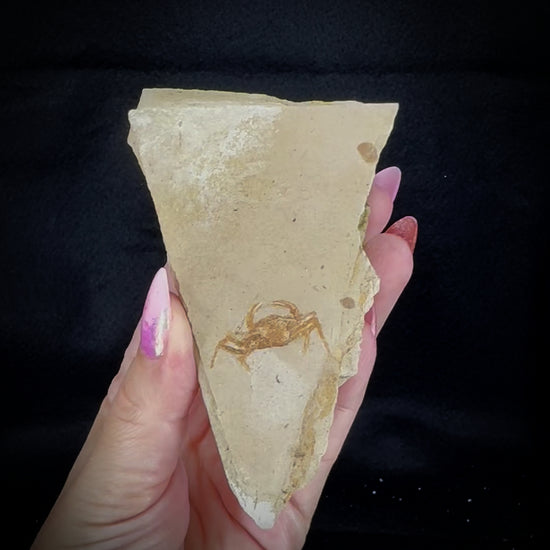 An abundant medium-growing crab species found in the shallow seabed of the middle Miocene Monterey Formation, Pea Crabs of the genus Pinnixa lived in what is now modern-day California approximately 12-16 million years ago. Beautifully preserved on slabs of flat shale, the crab fossil's color can vary from brown to gold depending on what minerals were present at time of fossilization. These unique fossil specimens show excellent articulation and detail of each body segment.