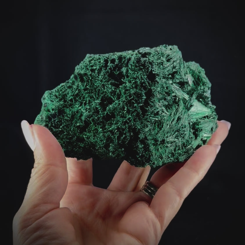 A vivid and richly colored copper-based mineral, Malachite is known for its deep green coloration, resulting from the oxidation of its copper and sulfide components. Malachite has been mined for both use in copper tools and for ornamentation and jewelry. It rarely occurs in crystal form but is often found in botryoidal or fibrous formations. The rich, silky and lustrous texture of these fibrous Malachite specimens from Congo combined with the incredibly rich color make them deservedly popular among collectors