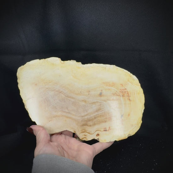 Perhaps the most well-known fossil material in the world, petrified wood is not wood at all but rather the fossilized remnants of trees from millions of years ago. Tree trunks, limbs, and branches that died under conditions that favor fossilization gradually become replaced with minerals until what remains is a replica of the original piece of wood consisting entirely of mineral material. Like the trees they capture the form of, each is unique and when cut vertically can reveal a cross section of the tree, sometimes including growth rings. Depending on the minerals present during fossilization, petrified wood can display an enormous variety of colors, textures and patterns. Each of these cut and polished slabs originates from Indonesia and is approximately 20-23 million years old.