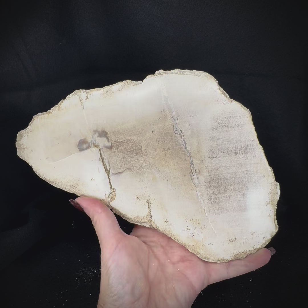 Perhaps the most well-known fossil material in the world, petrified wood is not wood at all but rather the fossilized remnants of trees from millions of years ago. Tree trunks, limbs, and branches that died under conditions that favor fossilization gradually become replaced with minerals until what remains is a replica of the original piece of wood consisting entirely of mineral material. Like the trees they capture the form of, each is unique and when cut vertically can reveal a cross section of the tree, sometimes including growth rings. Depending on the minerals present during fossilization, petrified wood can display an enormous variety of colors, textures and patterns. Each of these cut and polished slabs originates from Indonesia and is approximately 20-23 million years old.