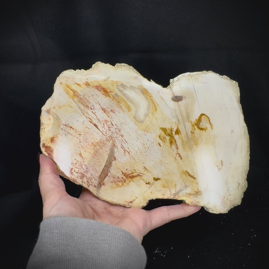 Perhaps the most well-known fossil material in the world, petrified wood is not wood at all but rather the fossilized remnants of trees from millions of years ago. Tree trunks, limbs, and branches that died under conditions that favor fossilization gradually become replaced with minerals until what remains is a replica of the original piece of wood consisting entirely of mineral material. Like the trees they capture the form of, each is unique and when cut vertically can reveal a cross section of the tree, sometimes including growth rings. Depending on the minerals present during fossilization, petrified wood can display an enormous variety of colors, textures and patterns. Each of these cut and polished slabs originates from Indonesia and is approximately 20-23 million years old.