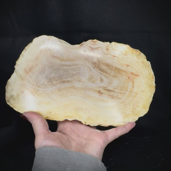 Perhaps the most well-known fossil material in the world, petrified wood is not wood at all but rather the fossilized remnants of trees from millions of years ago. Tree trunks, limbs, and branches that died under conditions that favor fossilization gradually become replaced with minerals until what remains is a replica of the original piece of wood consisting entirely of mineral material. Like the trees they capture the form of, each is unique and when cut vertically can reveal a cross section of the tree, sometimes including growth rings. Depending on the minerals present during fossilization, petrified wood can display an enormous variety of colors, textures and patterns. Each of these cut and polished slabs originates from Indonesia and is approximately 20-23 million years old.