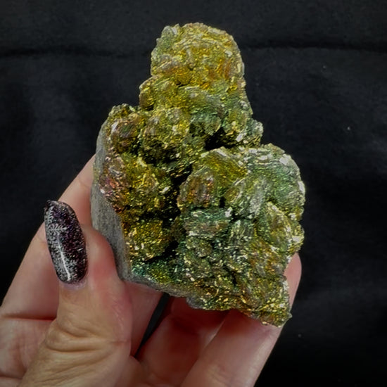 Rainbow or peacock pyrite is a much rarer form of pyrite named for the unmistakable and incredibly vibrant rainbow-colored iridescence it displays. The spectacular display of colors these specimens display can be formed by two different geological processes: the oxidation of pyrite causing ultra-thin layers of iron oxide to form on the surface, or the formation of equally thin layers of secondary minerals due to hydrothermal or other alteration. This naturally occurring form of relatively common pyrite remains highly sought after by collectors as a specimen or for use as a gem or in jewelry.