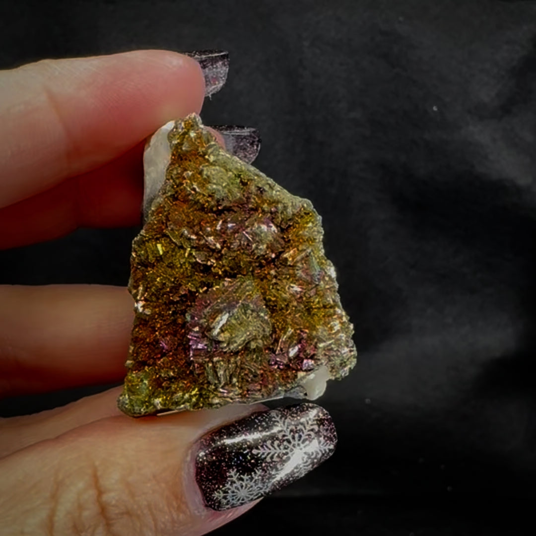 Rainbow or peacock pyrite is a much rarer form of pyrite named for the unmistakable and incredibly vibrant rainbow-colored iridescence it displays. The spectacular display of colors these specimens display can be formed by two different geological processes: the oxidation of pyrite causing ultra-thin layers of iron oxide to form on the surface, or the formation of equally thin layers of secondary minerals due to hydrothermal or other alteration. This naturally occurring form of relatively common pyrite remains highly sought after by collectors as a specimen or for use as a gem or in jewelry.