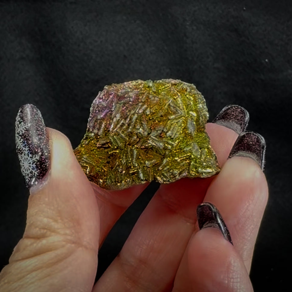 Rainbow or peacock pyrite is a much rarer form of pyrite named for the unmistakable and incredibly vibrant rainbow-colored iridescence it displays. The spectacular display of colors these specimens display can be formed by two different geological processes: the oxidation of pyrite causing ultra-thin layers of iron oxide to form on the surface, or the formation of equally thin layers of secondary minerals due to hydrothermal or other alteration. This naturally occurring form of relatively common pyrite remains highly sought after by collectors as a specimen or for use as a gem or in jewelry.