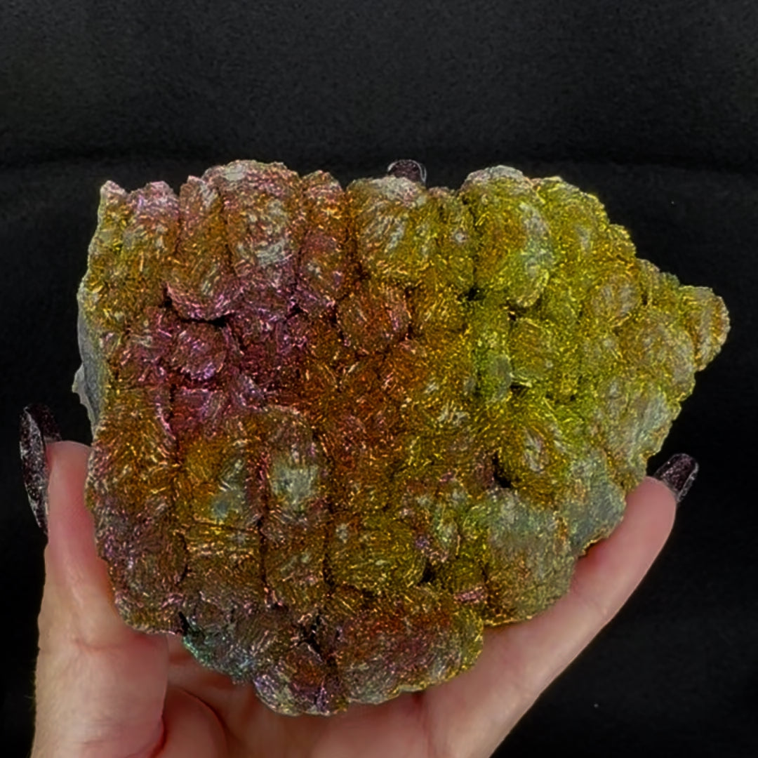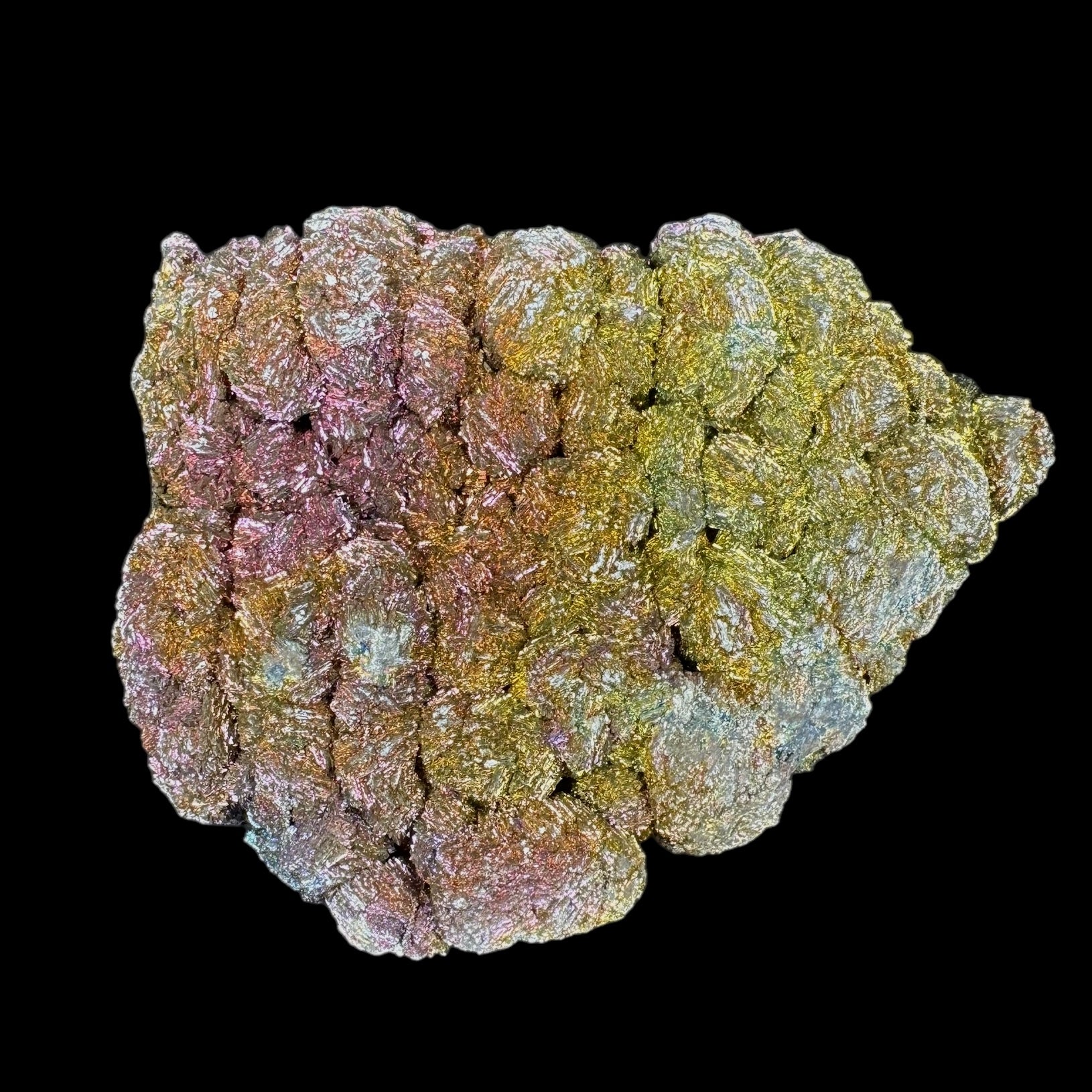 Rainbow or peacock pyrite is a much rarer form of pyrite named for the unmistakable and incredibly vibrant rainbow-colored iridescence it displays. The spectacular display of colors these specimens display can be formed by two different geological processes: the oxidation of pyrite causing ultra-thin layers of iron oxide to form on the surface, or the formation of equally thin layers of secondary minerals due to hydrothermal or other alteration. This naturally occurring form of relatively common pyrite remains highly sought after by collectors as a specimen or for use as a gem or in jewelry.